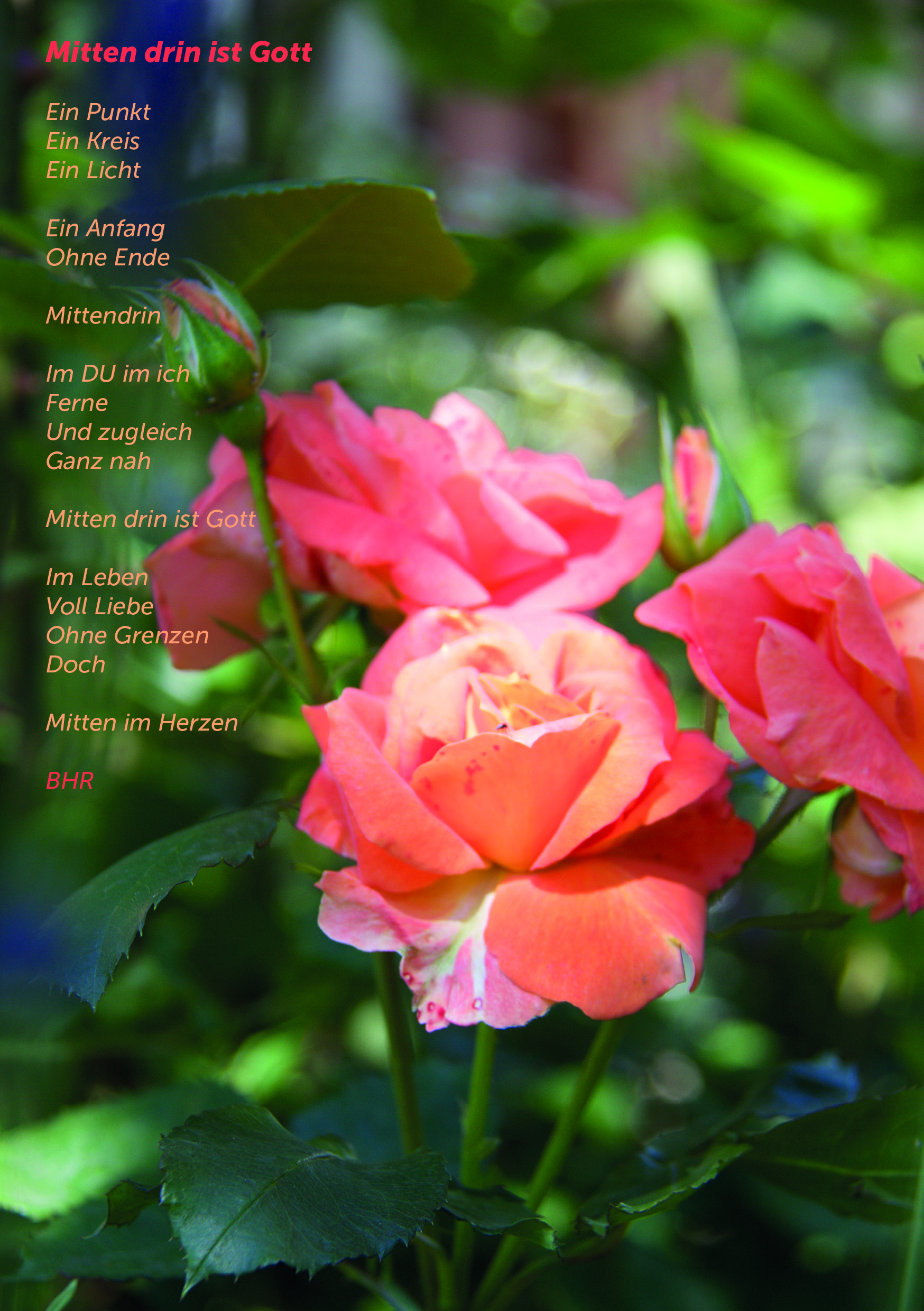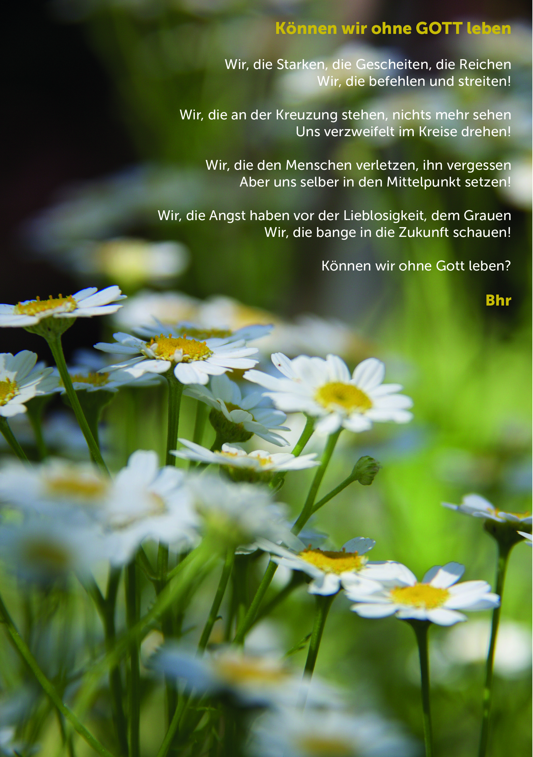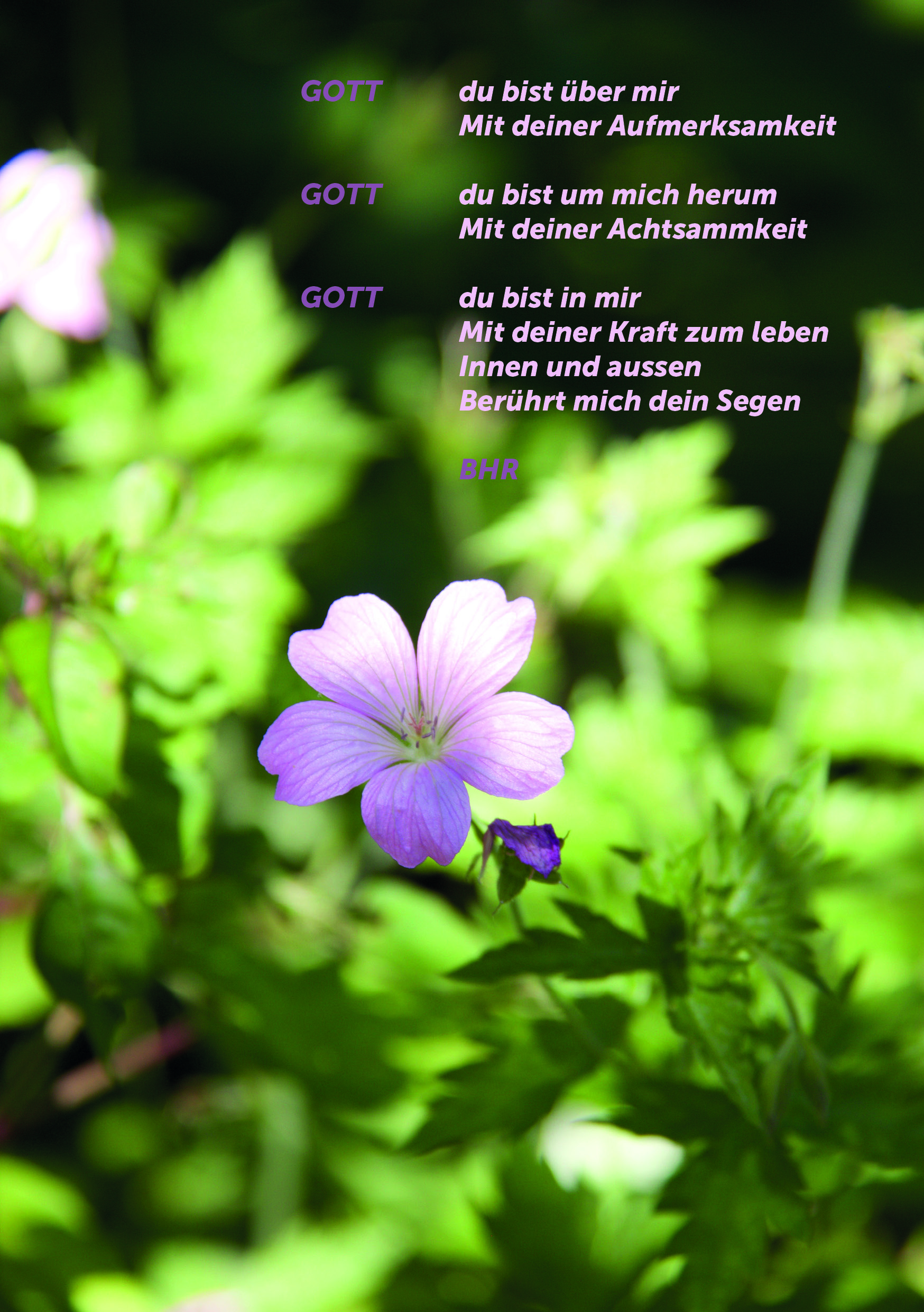 Texte Die biblischen Texte inspirieren für den Dialog mit dem Göttlichen. In der Stille und in Meditationen entstehen Gebete, die Menschen in verschiedensten Lebenslagen ansprechen und berühren.